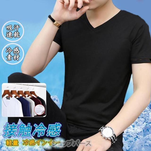 冷感インナー メンズ 半袖 インナー Tシャツ 吸汗速乾 肌着 Vネック V首 接触冷感 ひんやり 消臭加工 涼しい 爽やか 春夏 夏服 ドライ