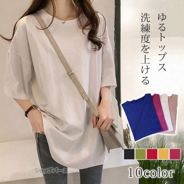 Tシャツ 半袖 レディース カットソー ゆったり ロングT カラバリ カジュアル おしゃれ トップス 涼しい シンプル 無地 オーバーサイズ