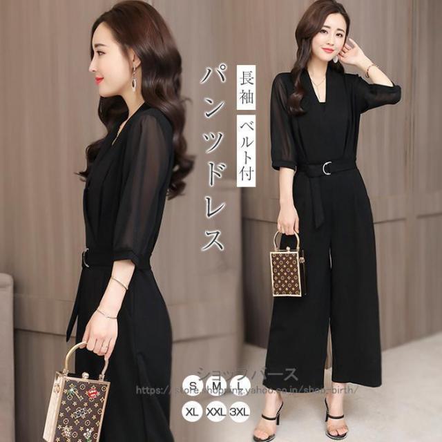 パーティードレス パンツドレス 結婚式 ドレス パーティドレス セットアップ パンツ オールインワン スーツ カジュアル 秋冬 大きいサイズ 着痩せ きれいめ