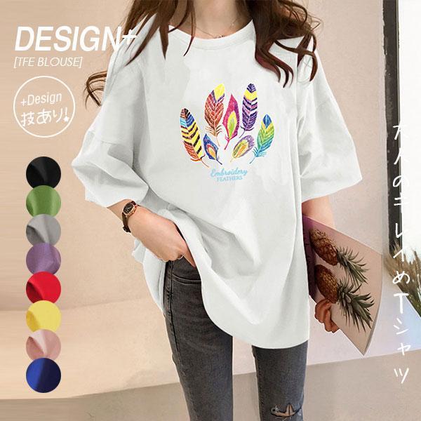 レディース 半袖tシャツ ロングtシャツ 半袖ロンt プリント ゆったり おしゃれ ロンティー ティーシャツ チュニックワンピース トップス 春夏