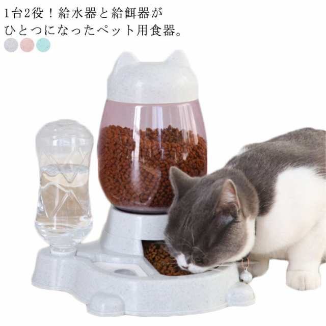2in1 給水器 給餌器 猫用 小型犬 中型犬 フードボウル 餌入れ 自動給餌器 ペット給水器 自動補給 丸洗い 可愛い 滑り止め ペット食器台