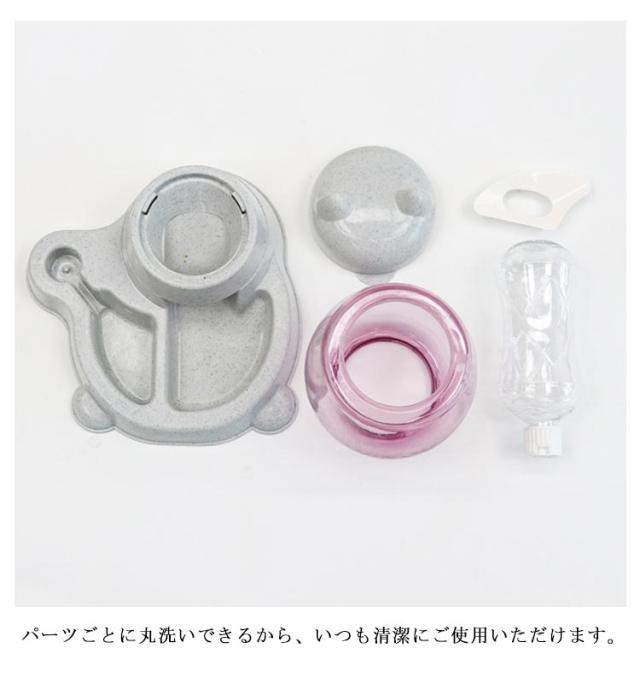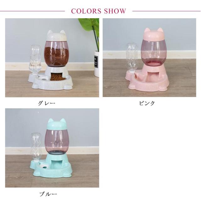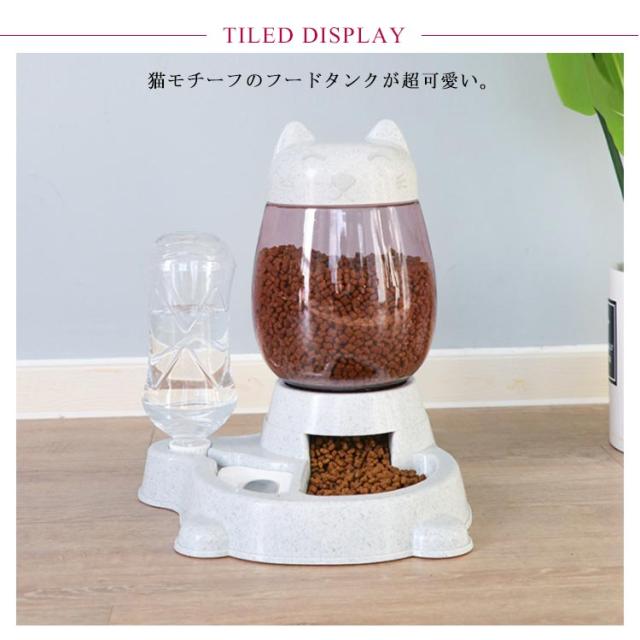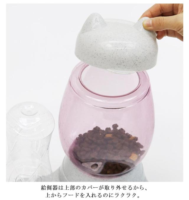 | 1台2役!給水器と給餌器がひとつになったペット用食器。 猫モチーフのフードタンクが超可愛い。 給餌器は上部のカバーが取り外せるから、上からフードを入れるのにラクラク。 透明ボトルなので残量が一目で分かる。 お水・フードは飲んで食べた分だけ給餌・給水されるから、いつも新鮮で綺麗なお水とフードが食べれます。 パーツごとに丸洗いできるから、いつも清潔にご使用いただけます。 電気を使わないので、お留守番時の停電にもかかわらず、とても安心。 | |