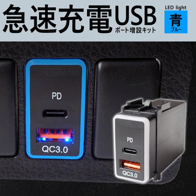 マーチ K13 K12 USBポート スマホ 携帯 電話 充電 USB Aタイプ Cタイプ LED カーチャージャー USB充電 充電器 携帯電話 ポート LED 青