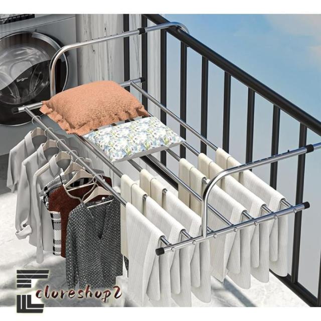 調節可能なアーム:物干し竿は2本のアームでバルコニーや手すり、窓辺、ラジエーターなどに吊るすことができます。