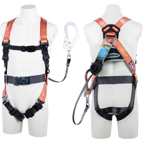 TSUYORON コアハーネス 胴ベルト付き シングルランヤード付き ロック機構付き巻取式ワン・ハンドリトラ オレンジ Lサイズ〔品番:TH-502-OH93SV-OT-OR-L-R23-BX〕[注番:1636688]