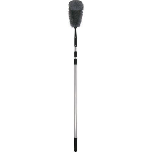 ●アルミ3段伸縮柄でグ〜ンと長い最長2.6m、高所のクモの巣ホコリとりに適しています。