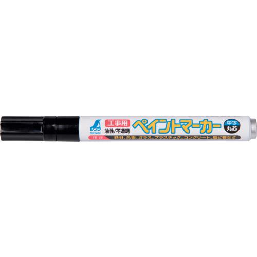 シンワ 工事用 ペイントマーカー 中字 丸芯 黒 10本入〔品番:79113〕[注番:2866295]