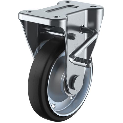 ユーエイ プレート式 固定 キャスター ゴム 車輪径150mm ストッパー付き Jタイプ KB(R)型 取付寸法100×56〔品番:WKB-150R〕[注番:2963744]