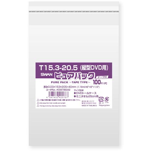 ■スワン OPP袋 ピュアパック テープ付 T 15.3-20.5(縦型DVD用) 100枚入り〔品番:006798342〕【3413663:0】[店頭受取不可]