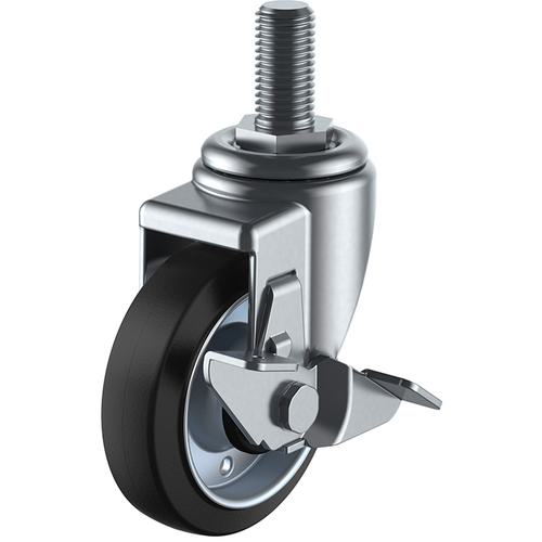 ユーエイ ねじ込み式 自在 キャスター ゴム 車輪径100mm ストッパー付き Jタイプ SJT−S型 ネジ寸法M20×40ピッチ2.5〔品番:SJT-100WPS-M20-40〕[注番:3797121]