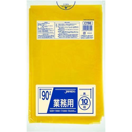 ジャパックス 業務用ポリ袋 90L黄色10枚 厚み0.045mm〔品番:CY90〕[注番:3892685]