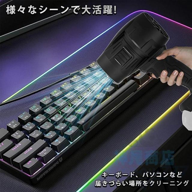 このダストブロワーは、洗車の拭き上げ、車内のゴミやホコリ飛ばし、除雪、キーボードの掃除、庭の掃除、マットのゴミの除去、扇風機代わり、ペットの入浴後の乾燥、炭火起こしなどさまざまなお掃除の場面で幅広く活躍できます。