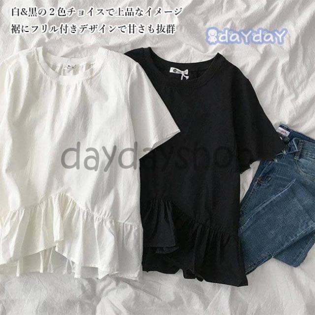 Tシャツ レディース 半袖Tシャツ 夏 無地Tシャツ 白 カットソー サマーTシャツ フリルTシャツ レディースTシャツ 黒 クルーネック