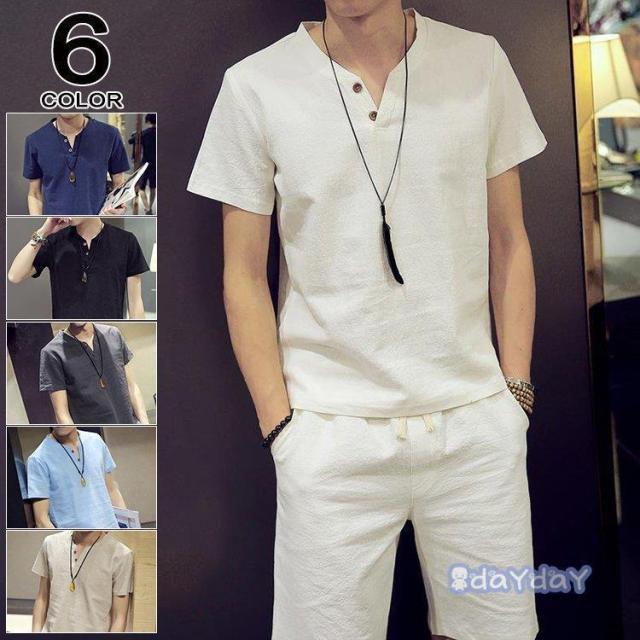 半袖セットアップ メンズ 夏 綿麻風 上下セット 無地 ジャージ上下 スポーツウェア 大きいサイズ