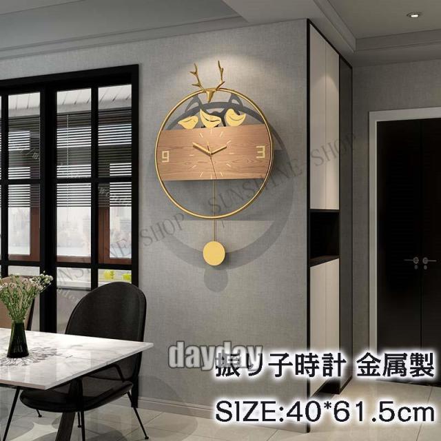 壁掛け時計 振り子時計 鹿角 おしゃれ 文字盤 時計 北欧 ウォールクロック 装飾 モダン シンプル アンティーク ローマ数字 大きい