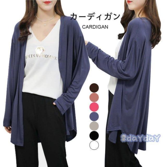 カーディガン レディース おしゃれ ミドル丈 ゆったり シンプル 冷房対策 無地 長袖 通勤 通学 キレイめ トップス 夏新作