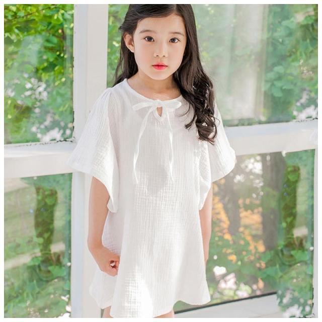 ミニワンピース ボックスワンピース Aラインワンピース 子供服 夏 白 女の子 女児 キッズ 小学生 半袖 5分袖 ゆったり シンプル 無地 フレアス