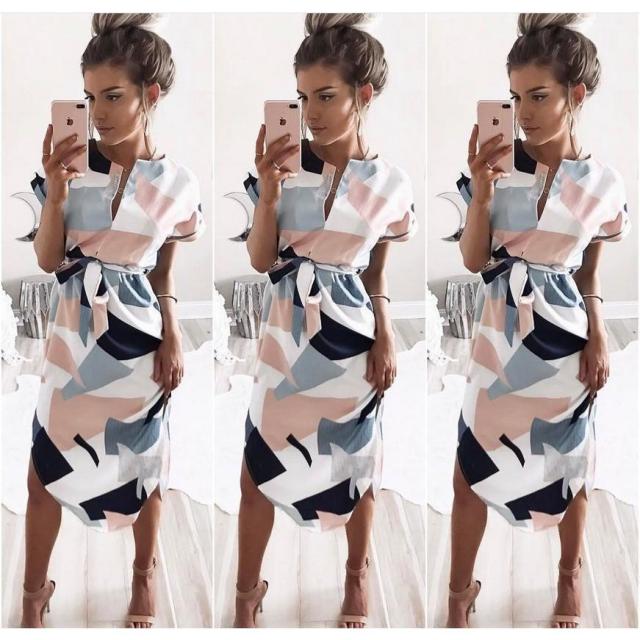 ワンピース ワンピ ミディアム ひざ丈 半袖 シフォン スリットネック 腰紐 春 夏 大人 上品 レディース タイト かわいい お呼ばれ 女の子 おし