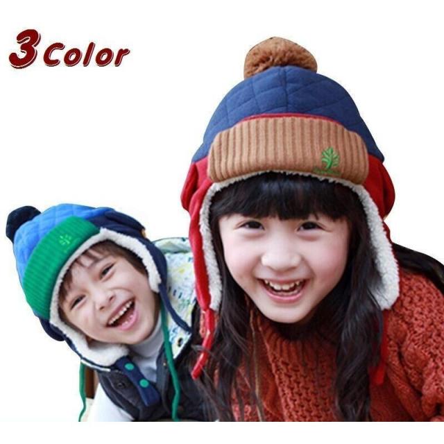 裏ボア&耳あて付きで暖かいキッズ用ニット帽です。