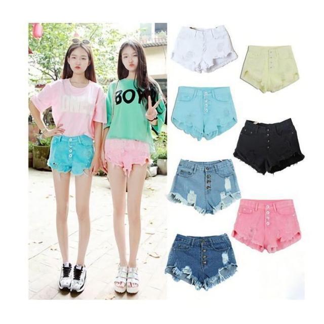 デニムショートパンツ ショートパンツ ホットパンツ レディース ボトムス ダメージジーンズ 短パン ジーパン Gパン ハイウエスト カジュアル おしゃ