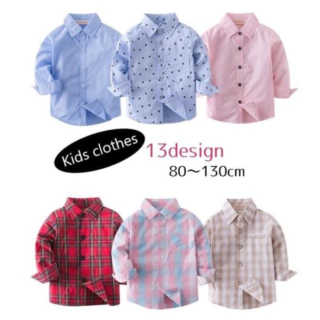 カジュアルシャツ 子供服 子供用 キッズ ベビー 女の子 男の子 トップス 長袖 襟付き 前ボタン スター 無地 総柄 チェック ストライプ シンプル