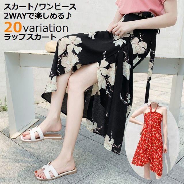 巻きスカート ラップスカート ロング ミモレ丈 レディース シフォン フレア Aライン 花柄 体型カバー ワンピース パレオ ボトムス ホルターネック