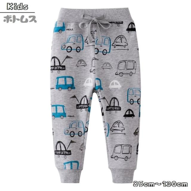 キッズに人気な車の柄が魅力のウエストゴムでゆったり履き心地のキッズカジュアル