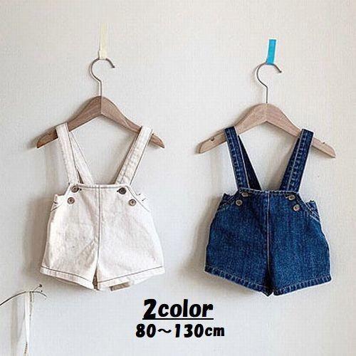 ショートパンツ 吊りベルト つなぎ サロペット カボチャパンツ風 キッズ ベビー ボトムス デニム ジーンズ ボタン シンプル 無地 柄なし かわいい