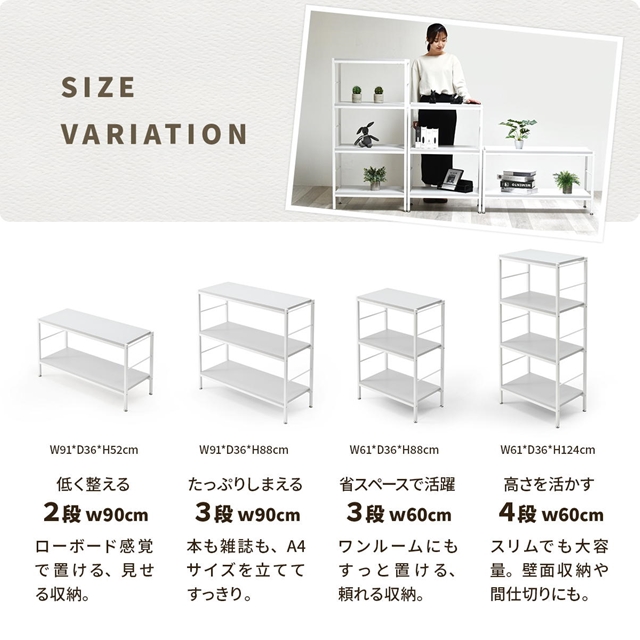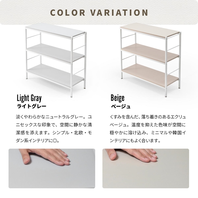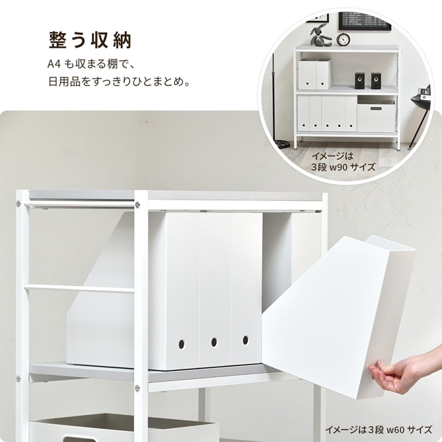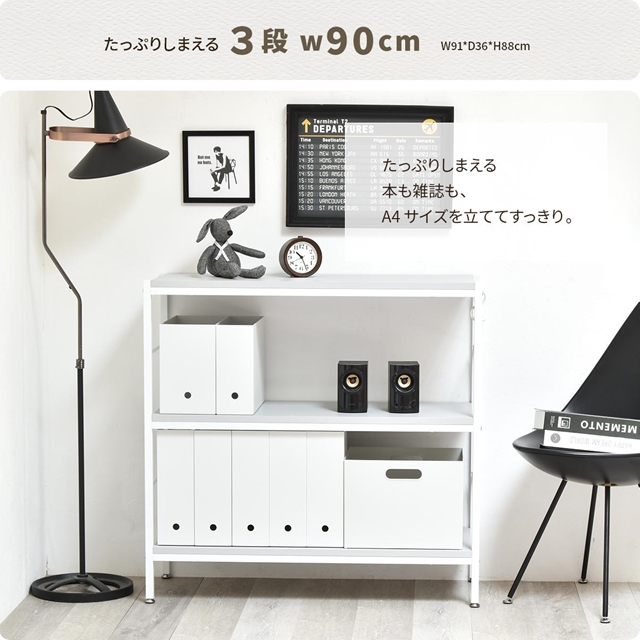 おしゃれなシンプルさ オープンシェルフ 3段 幅90cm 【送料無料】 オープンラック A4 本棚 シンプル おしゃれ ホワイト スチール棚 ニュアンスカラー 可愛い 白 ライトグレー ベージュ 飾り棚 ロータイプ