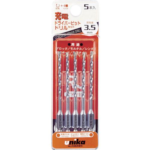 ■UNIKA 充電ドライバービットドリル 3.5mm 5本セット〔品番:DP5RJ35〕【4085884:0】[店頭受取不可]