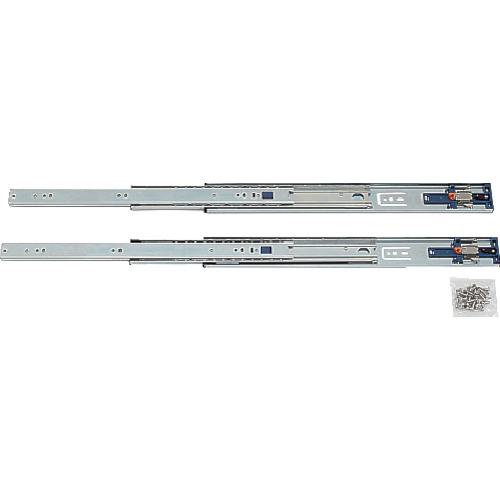 ●プッシュオープン装置付スライドレールです。そのためハンドルやつまみが不要でフラットなデザインのキャビネットに仕上がります。