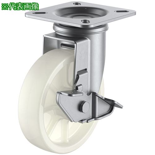 ユーエイ プレート式 自在 ステンレスキャスター ナイロン 車輪径200mm ストッパー付き Jタイプ SUS−J−S型 取付寸法115×115(105×105)〔品番:SUS-NJ-200S〕[注番:4405676]