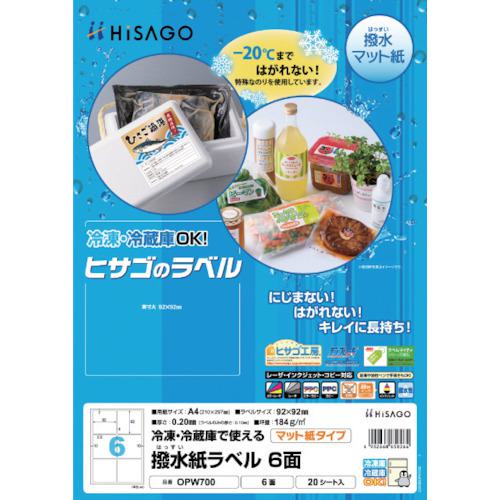 ■HISAGO 撥水紙ラベル A4 6面〔品番:OPW700〕【4484597:0】[店頭受取不可]