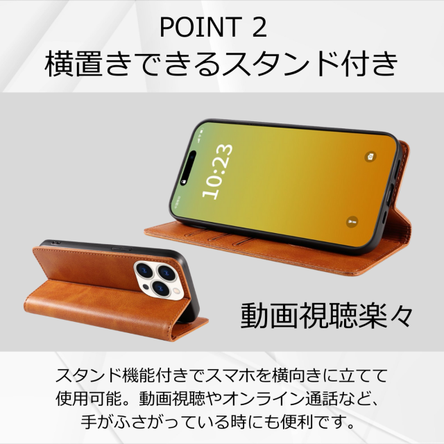 土日祝も発送★送料無料★ 手帳型スマホケース iPhone15pro対応 マグネット開閉&スタンド機能付き