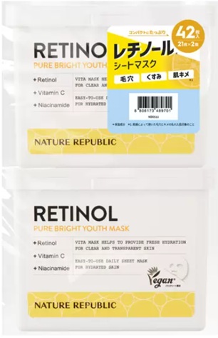 【42枚入】ネイチャーリパブリック レチノール シートマスク21枚 x 2 毛穴 くすみ 保湿 ビタミン 美肌習慣 韓国コスメ NATURE REPUBLIC