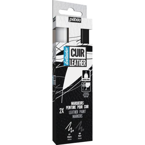Pebeo セタカラーレザー(革用)マーカー マット色 ホワイト&ブラック 2色セット〔品番:295685〕[注番:6072936]