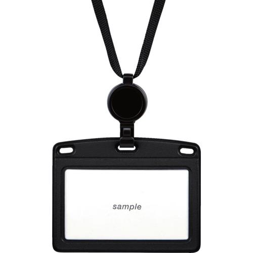 OP 吊り下げ名札 リール式 レザー調 ヨコ名刺 1枚 黒〔品番:NL-25P-BK〕[注番:6536937]