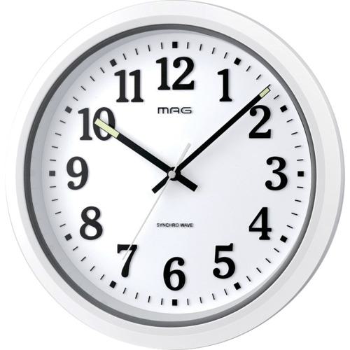 MAG 掛け時計 電波時計 防水 防塵 アナログ ナヤ IP67 夜間秒針停止機能付き 立体文字 プラスチック風防 ホワイト 直径32cm W−734WH−Z〔品番:W-734 WH-Z〕[注番:6590978]