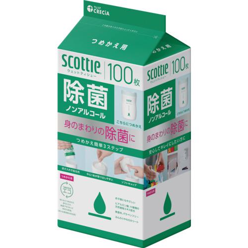 クレシア スコッティ ウェットティシュー除菌 ノンアルコール 100枚 つめかえ用〔品番:77143〕[注番:6972534]