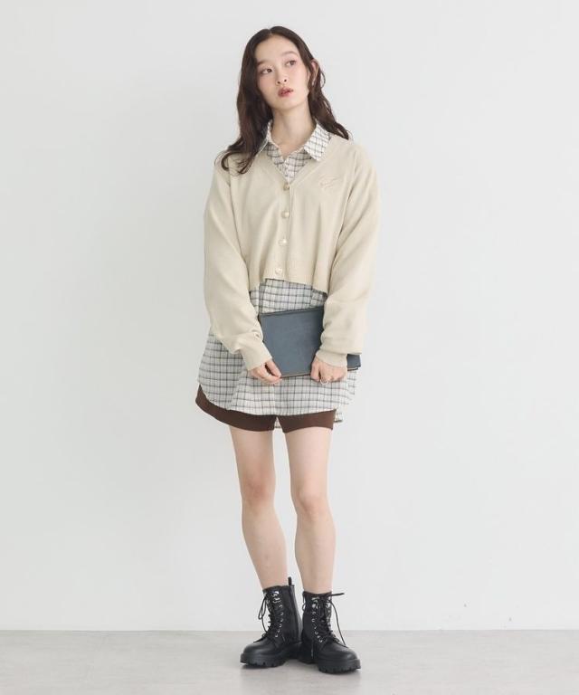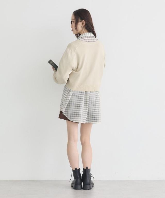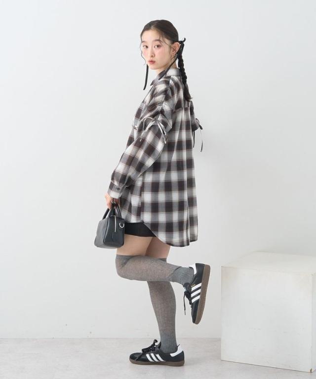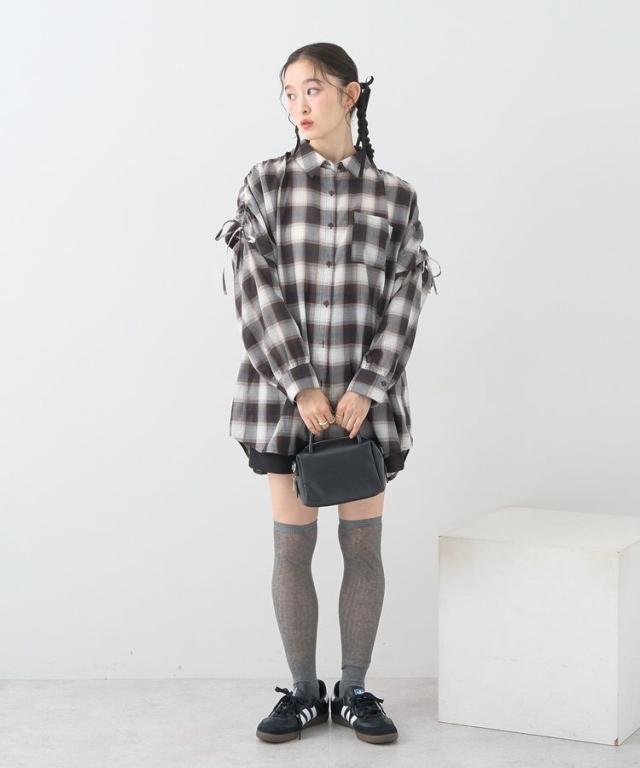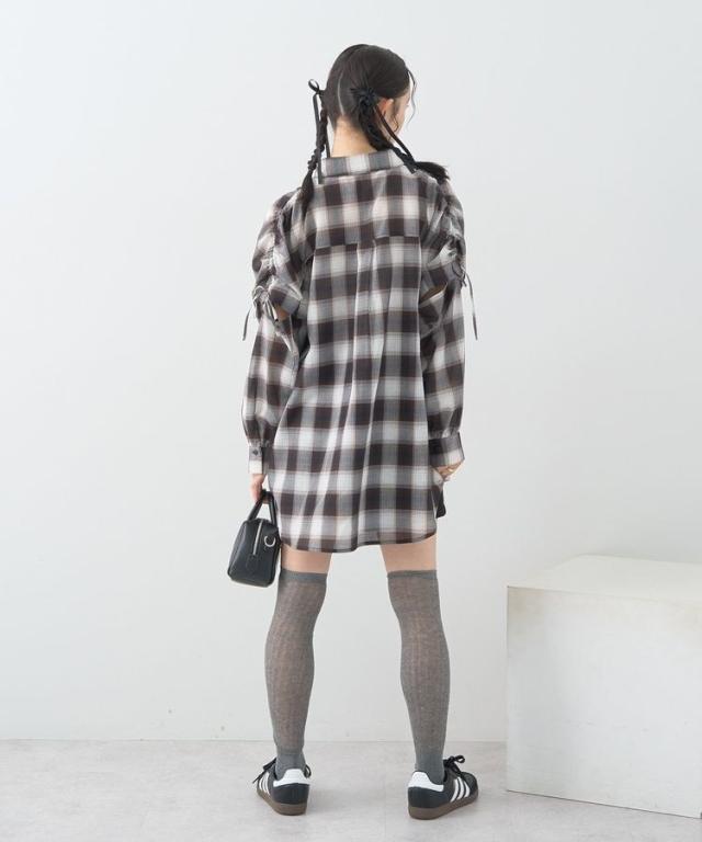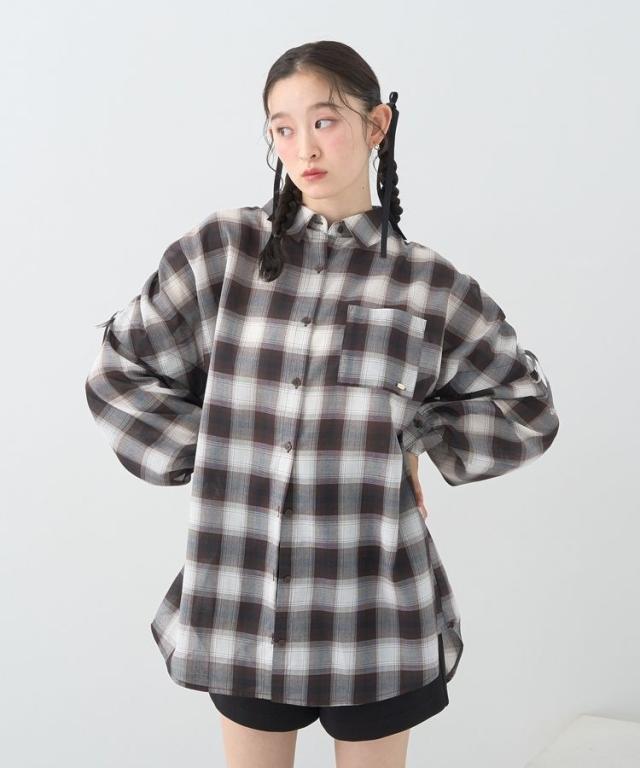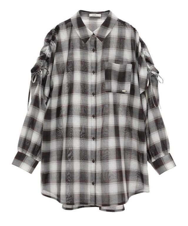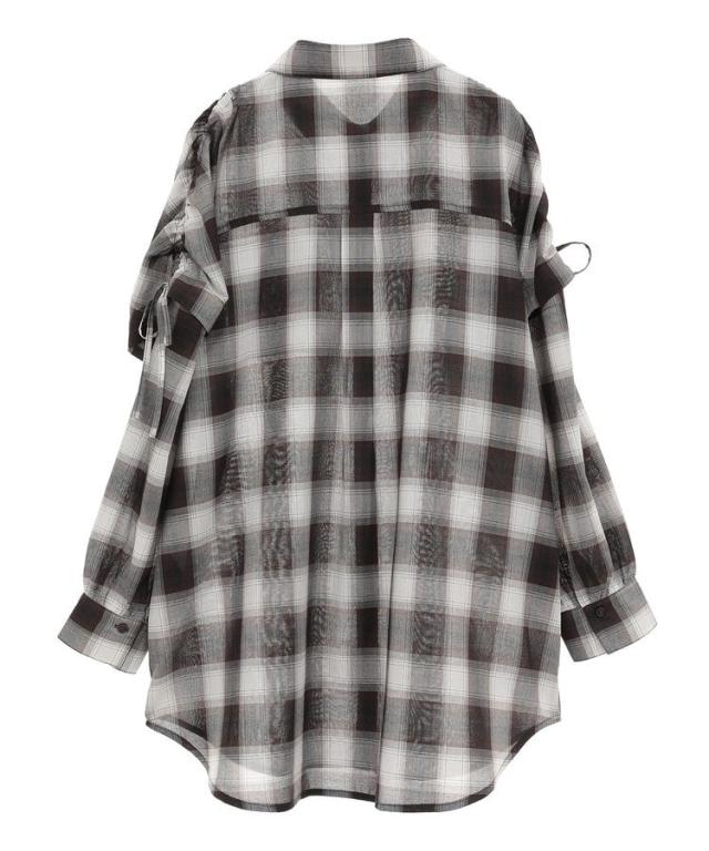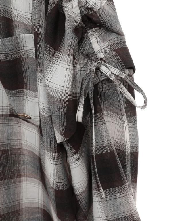 2wayショルダードロストリボンチェックシャツ