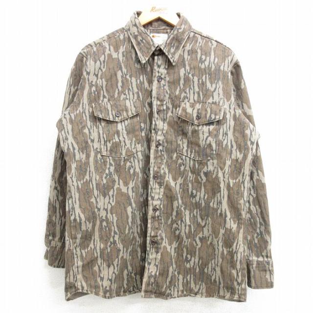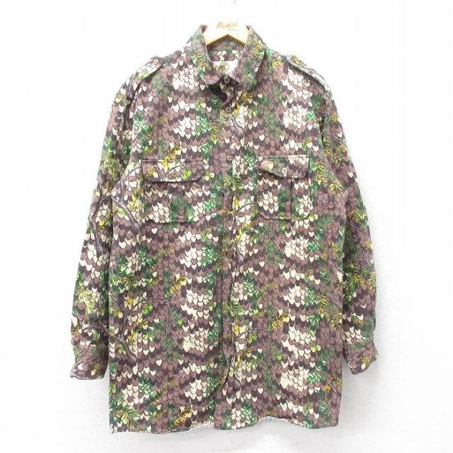 古着 長袖 ミリタリー シャツ メンズ オランダ軍 茶他 ブラウン 迷彩 Lサイズ 中古 トップス 中古 古着