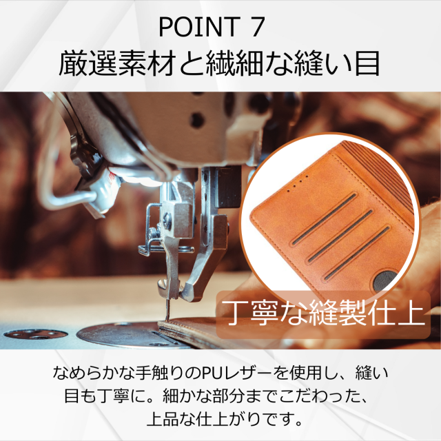 外側は高級感のあるPUレザー、内側は衝撃をやわらげるTPU素材を採用し、大切な端末をしっかり保護します。