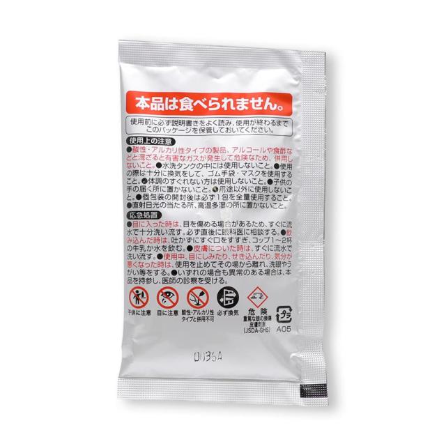 ジクロロイソシアヌル酸塩、発泡剤(炭酸塩、有機酸)、界面活性剤(アルファオレフィンスルホン酸ナトリウム)