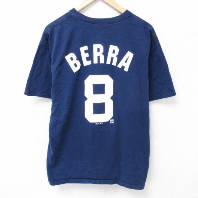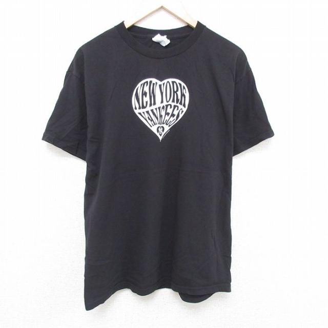 古着 半袖 Tシャツ メンズ MLB ニューヨークヤンキース デレクジーター 2 フォトプリント 全面プリント クルーネック 黒 ブラ 中古 古着