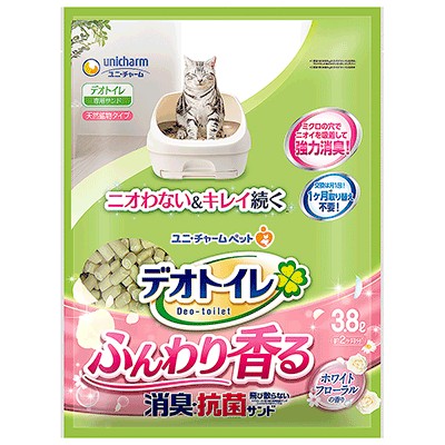 デオトイレ ふんわり香る消臭・抗菌サンド ホワイトフローラルの香り ニオわない&キレイ続く ※愛猫1頭(体重8kgまで)のデオトイレ使用時。ウンチをした場合は早く取り除いてください。 ◆猫ちゃんが砂かきするたびに香りのカプセルがはじけて香りが発生。しっかり消臭、香り長続き ◆ミクロの穴でニオイを吸着して強力消臭 ◆交換は月1回。1ヶ月交換不要 ※愛猫1頭(体重8Kgまで)の場合 ◆猫ちゃんの手に挟まりにくい大きさで、飛び散りにくく、お掃除もラクラク ※デオトイレ取り替え専用消臭サンド(シリカゲル丸粒タイプ)比 ◆粉立ちカットコーティング採用 ◆撥水で足元サラサラ清潔。足元にオシッコを残しません。 4520699685525