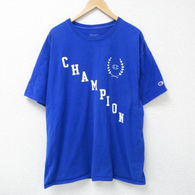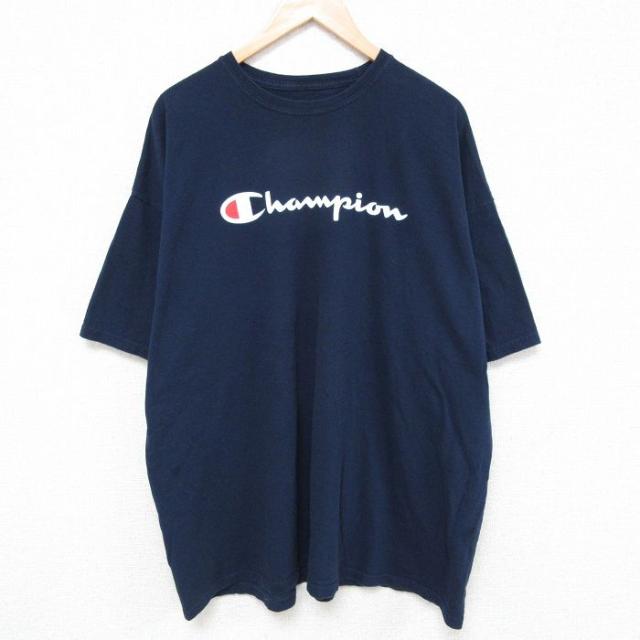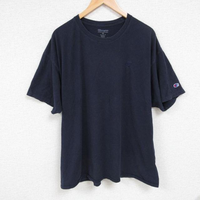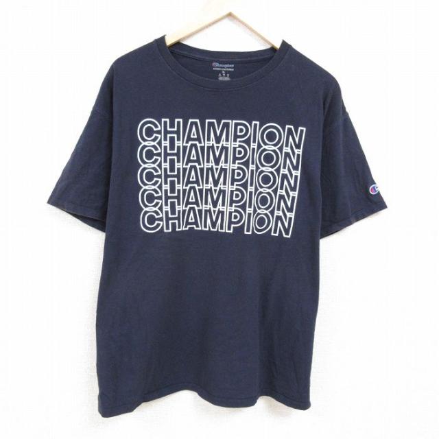古着 チャンピオン champion 半袖 ブランド Tシャツ メンズ ビッグロゴ コットン クルーネック 紺 ネイビー XLサイズ 中古 中古 古着