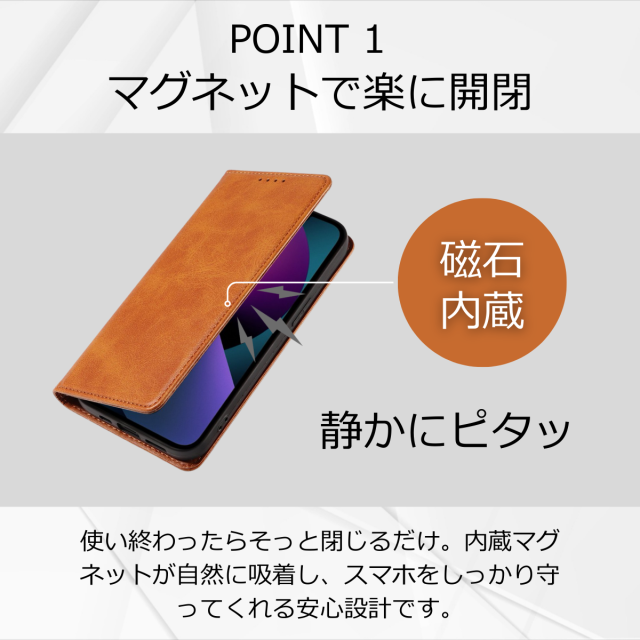 マグネット開閉で使いやすく、横置きスタンドとしても活躍します。