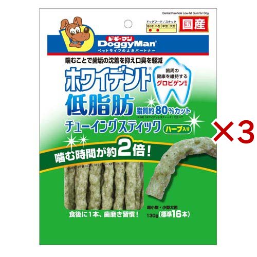 ドギーマン ホワイデント 低脂肪 チューイングスティック ハーブ入り(130g×3セット)[犬のおやつ・サプリメント]