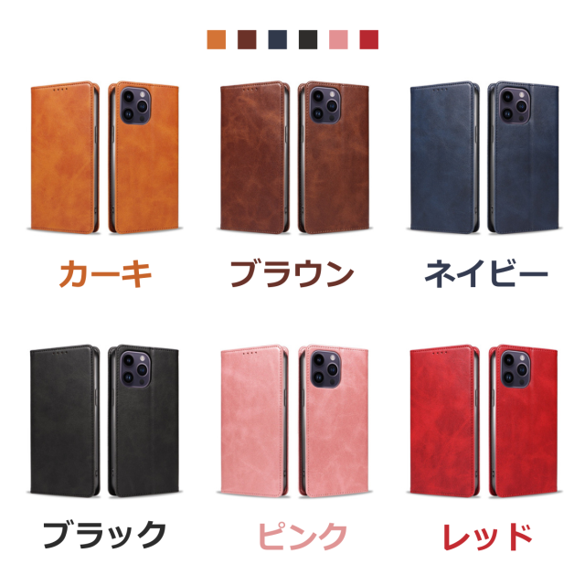 ブラック・ブラウン・カーキ・ネイビー・レッド・ピンクの6色展開で、お好みに合わせてお選びいただけます。