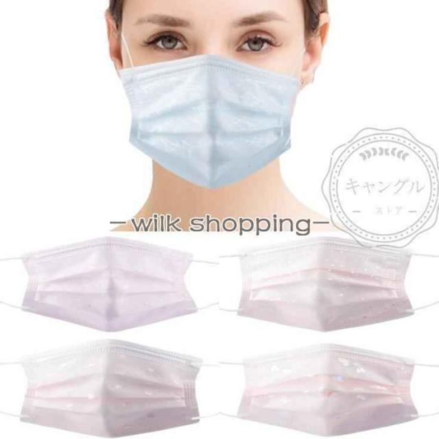 レースマスク 不織布 50枚 使い捨て おしゃれ 可愛い キラキラ 大人用 母の日 花柄 花粉対策 飛沫防止